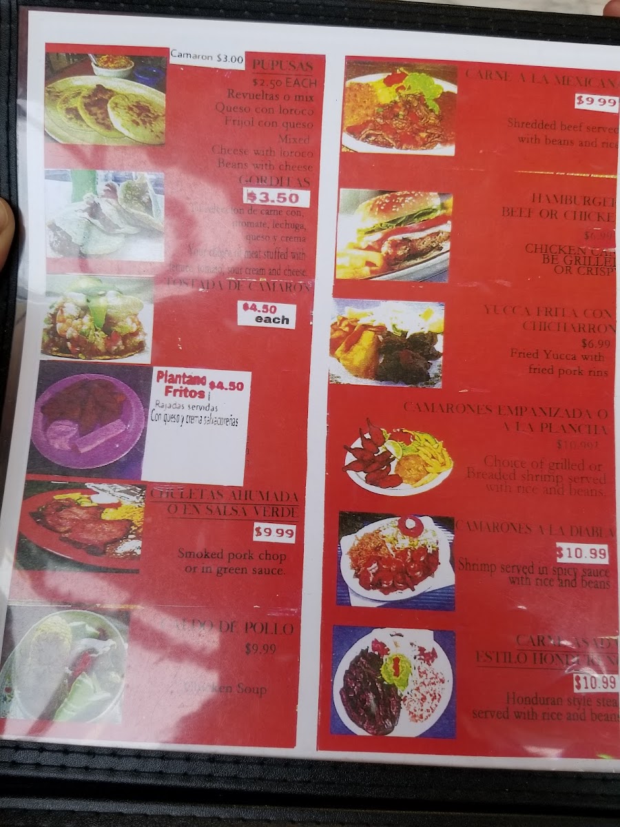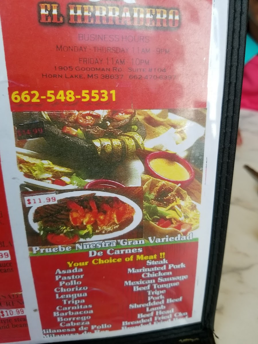 Beef, chicken, tripa, or lengua y borrego.